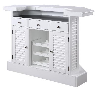 Whiteacrylic louvered bar with canted front and bump out footrest.
