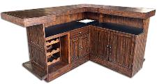 Includes wine rack, laminated bartending working surface, wooden foot rail and ample storage.