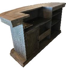 Back bar feature LED lighting and removable center shelf for flat screen TV, wine rack and large cavity for